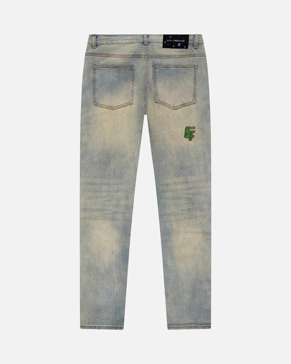 5 pocket jean with a unique wash effect, 1 hidden button at the bottom wich one can open and close.