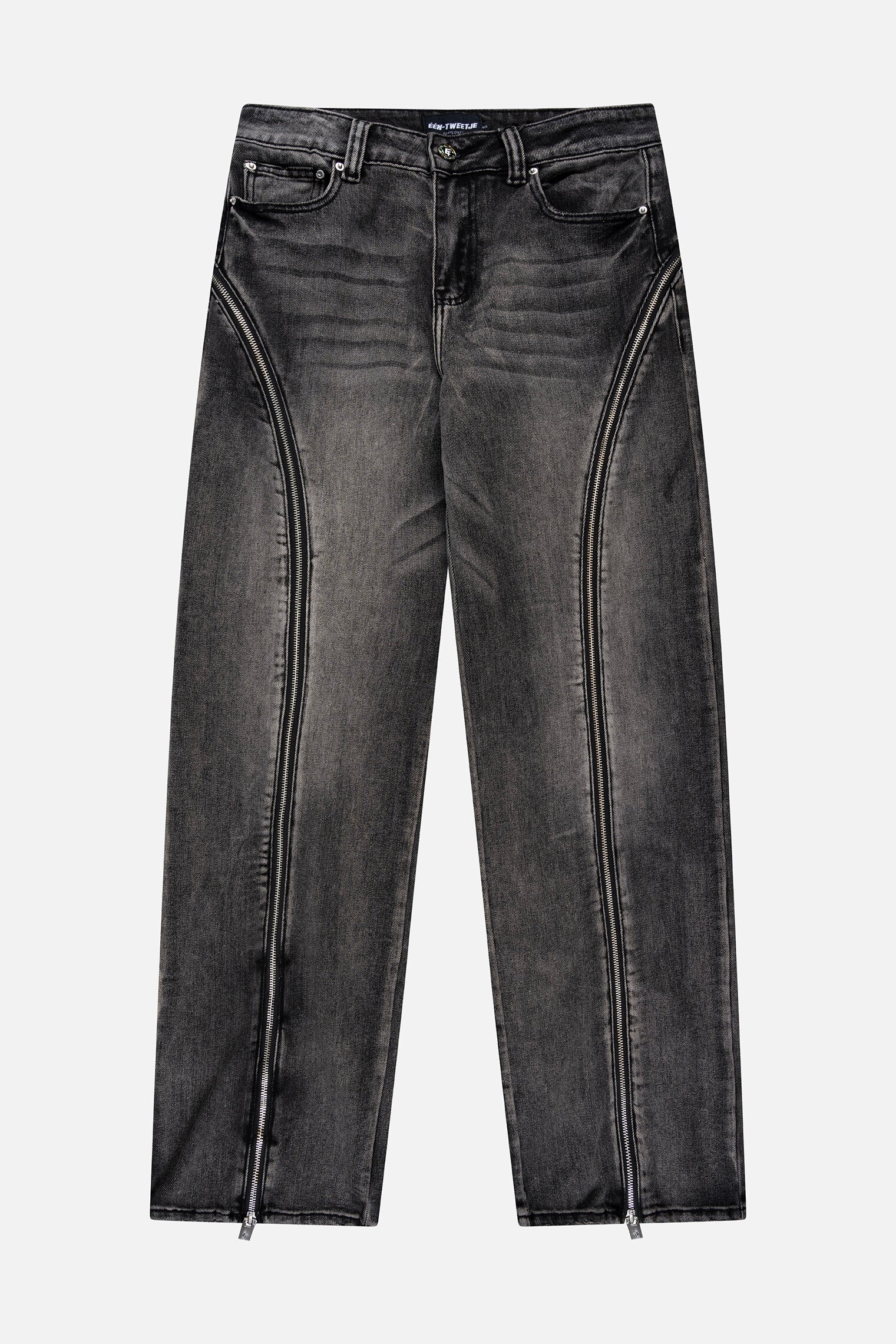 Woman grey multi zipper jeans
